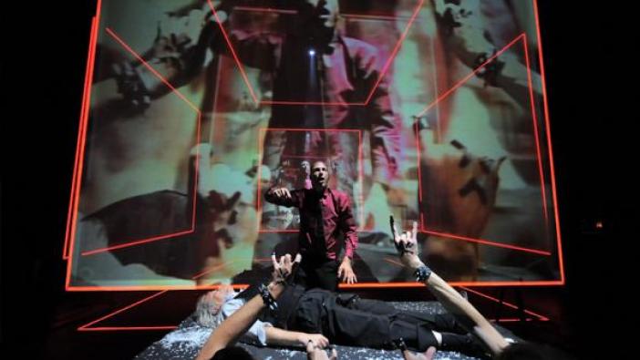 Adaptation of Christian Kracht's novel of the same name. Orginally opened at the Schauspielhaus Bochum, still in reportoire at the Burg Theater Vienna where Matthias Hartmann is now artistic director.