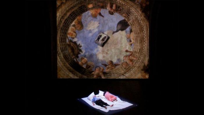 The performance was a rehearsed reading by John & Katya of their book 'Lying Down to Sleep' - a conversational study of Mantegna's frescoes in the bridal chamber of the ducal palace in Mantua, Italy.